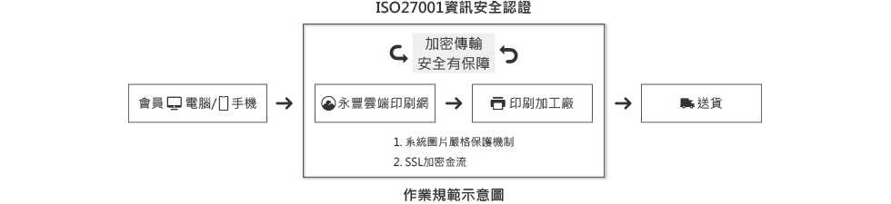 5.針對隱私與著作保護的資訊安全部分,永豐雲端印刷網所屬的公司已經通過 ISO2701 資訊安全管理驗證服務標準並獲得國際認證。(ISO27001詳細介紹 http://en.wikipedia.org/wiki/ISO27001)