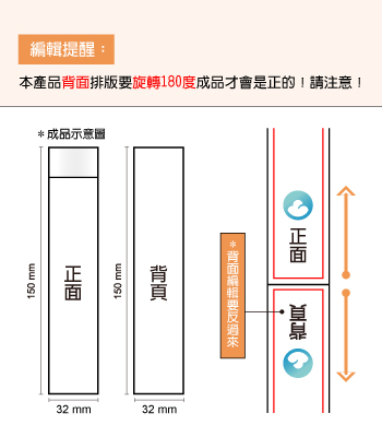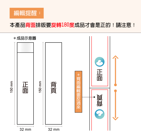 • 由於加工方式為一刀裁切,故成品裁切有時會裁到左右模,均屬正常現象。(重要設計圖文請勿貼齊出血線)