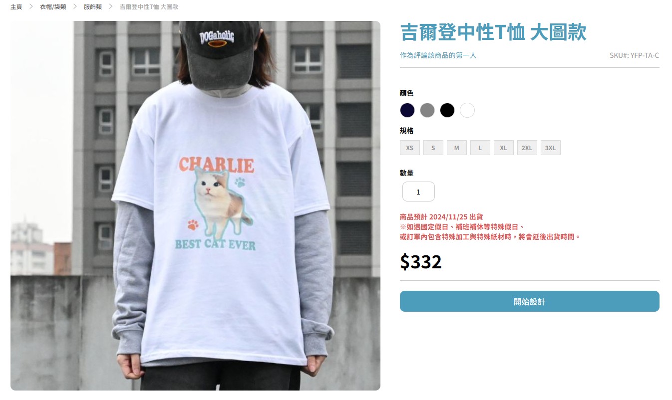 部分商品則點擊「開始設計」即會進入編輯器,不需選擇版型。