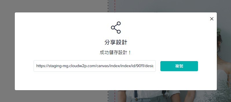 按下「分享」時,會產出一個作品編輯連結,將連結複製後,即可將編輯中的作品分享給其他人(但會成為一個全新的獨立作品,其他人繼續進行編輯時不會影響你的作品)。