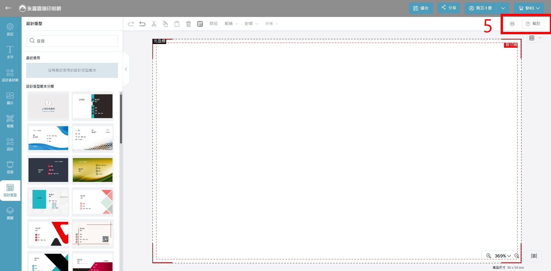 當您完成設計作品時,按下「儲存」,即可將作品儲存到「會員中心」中的「我的設計」。請注意!您必須先登入帳戶才能進行儲存。